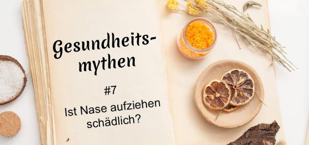 Im Volksmund heißt es häufig, Schleim durch die Nase hochzuziehen sei nicht nur unhöflich und unappetitlich, sondern zudem auch gefährlich, da der Schleim sich in den Nasennebenhöhlen einniste. Mediziner Carsten Lekutat widerlegt diese Behauptung ganz klar: Nicht das Hochziehen des Schleims, sondern zu kräftiges Schnäuzen birgt Gefahren. Denn der dabei entstehende Druck leitet den Schleim aus der Nase im schlimmsten Fall in die Nebenhöhlen oder durch einen Kanal im Nasen- Rachen-Raum ins Mittelohr. Auch wenn das Naseputzen wohl manierlicher ist, gesünder ist es nicht.